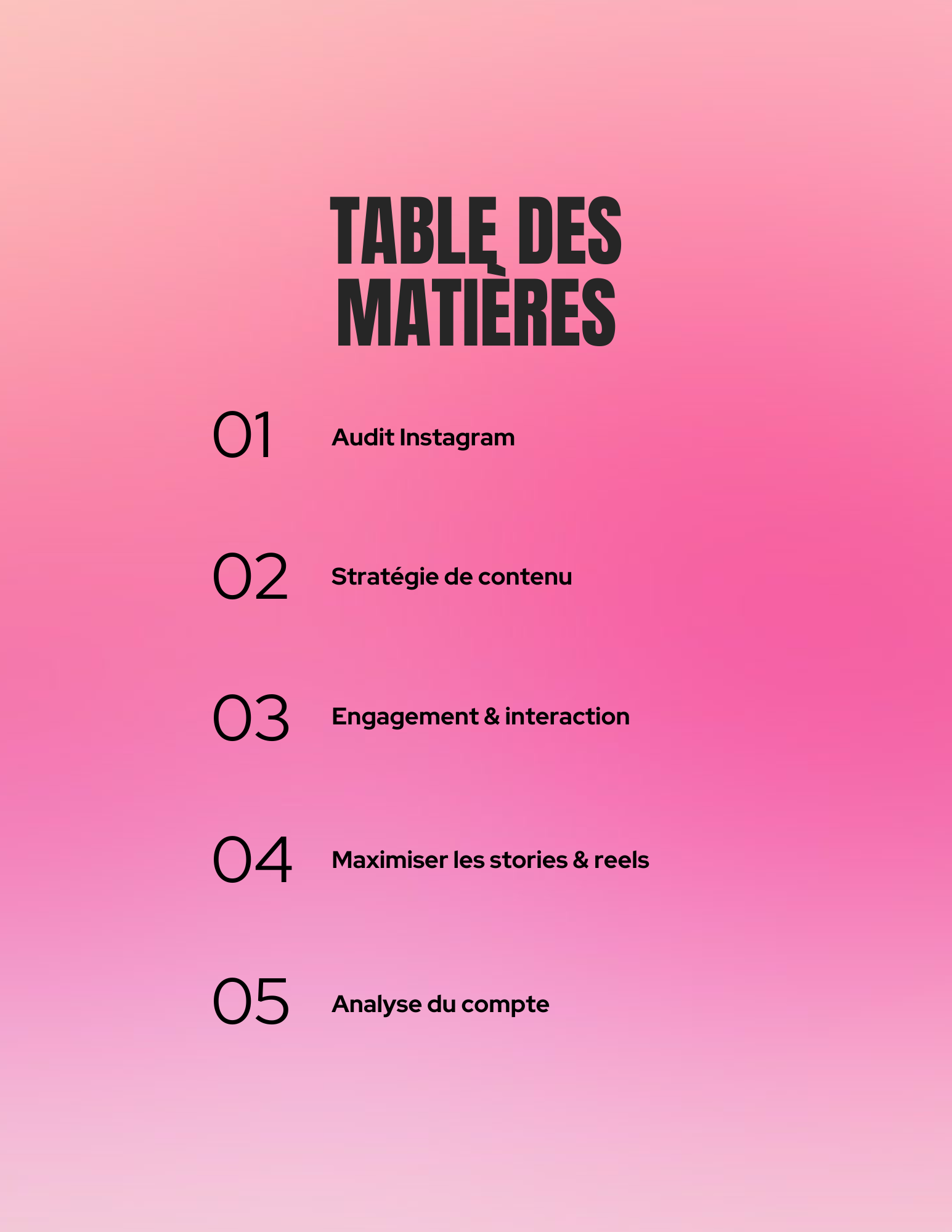 Cet e-book de 28 pages te guide pas à pas pour analyser ton compte, améliorer ta stratégie et maximiser ton engagement. Simple, pratique et actionnable, il te permet de transformer ton profil en un vrai outil de business ou d’influence.