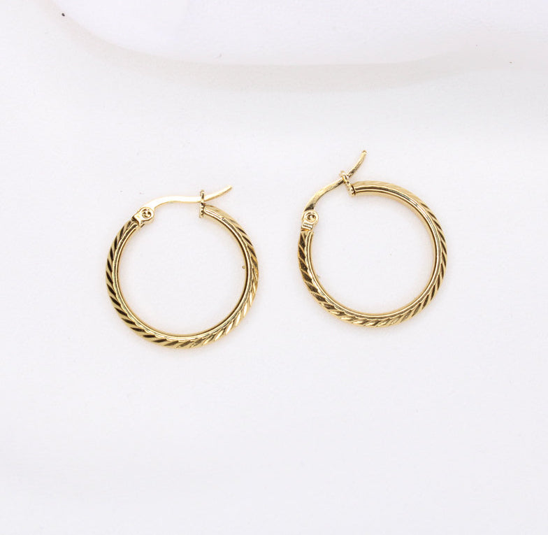 Conçues en acier inoxydable doré, elles résistent parfaitement au temps et à l’usure tout en conservant leur éclat. Leur motif finement torsadé leur apporte du relief et une élégante sophistication, sans jamais être trop imposant.